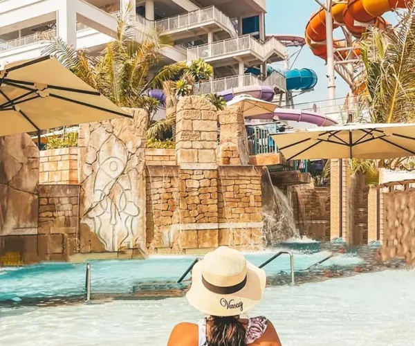 - Besides endless access to its rides, slides and Shark lagoon experiences, you can learn about marine biology and enjoy complimentary entry to the resort’s top attractions such as the 700-meter-long Adventure Beach and Surf's Up – the ultimate wave rider attraction.