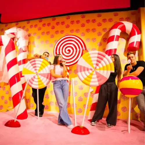 Explore Candy Paradise, a magical place with bright colors, fun objects, and endless photo opportunities.
