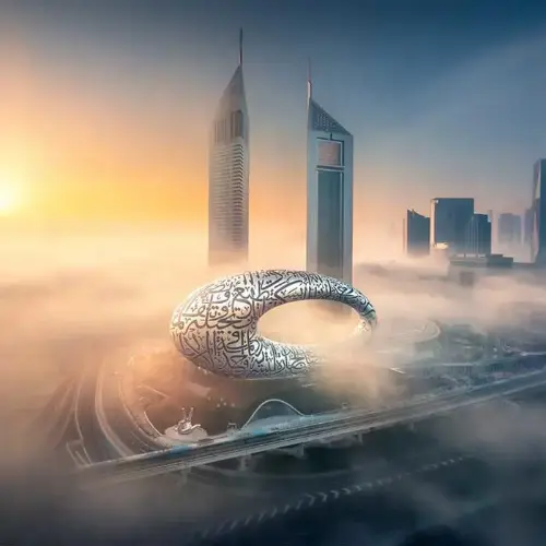• 77-meter piece of art is the embodiment of Sheikh Mohammed bin Rashid al-Maktoum's vision for the future of Dubai and his devotion to the ancient history of his ancestors. While many consider the museum as the pinnacle of architectural advancement in Dubai, the designer believes it can still develop into something much better. The Museum of the Future logo somehow shows the torus-shaped structure and is skillfully designed to show both the inner and outside beauty of the museum. The Museum starts its work from 9:30 AM to 8:30 PM and is open all days. The Museum of the Future includes a trip to the year 2071 among its offerings. The museum spans seven stories, with five of those levels devoted to themed displays. The tour starts on the fifth level and descends through the building in a step-by-step fashion.